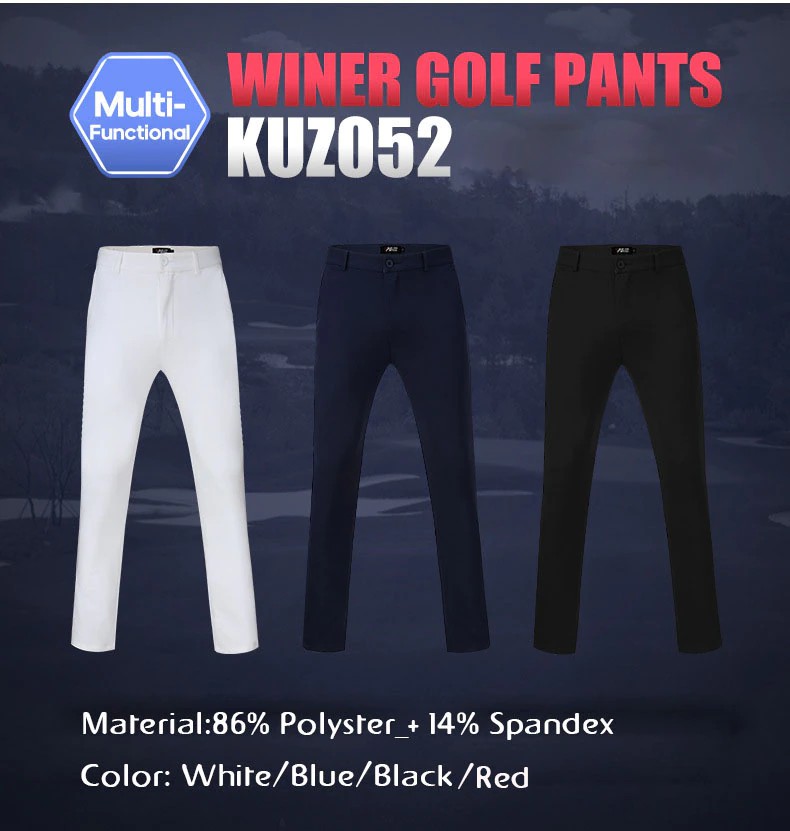 กางเกงกอล์ฟ PGM KUZ056 ผลิตจากเนื้อผ้า นาโนเทคโนโลยีที่ดีที่สุดสำหรับนักกอล์ฟ มีสี่สี ประกอบด้วย สีขาว สีกรม สีฟ้า เทา ประกอบด้วยไซด์ 31 32 33 34 35 34 35 36 37 38