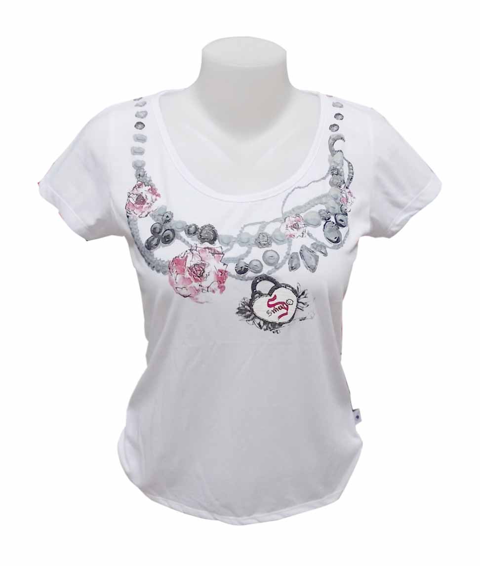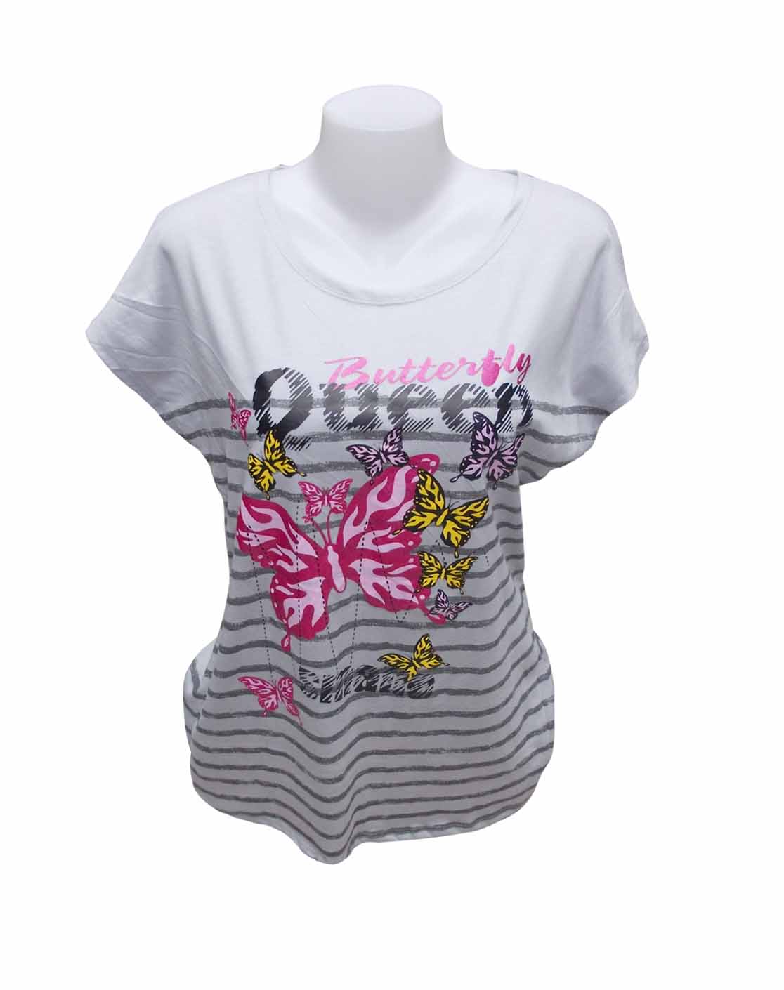 G023-เสื้อคอกลมผู้หญิงแขนสั้น ( มีพิมพ์ลาย )