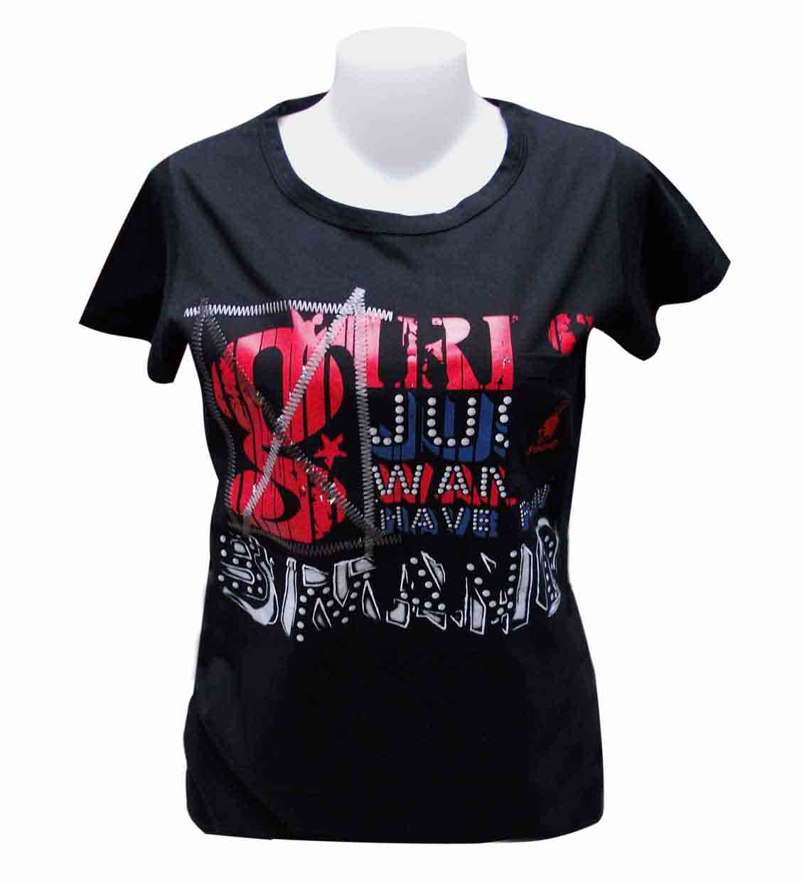 F049-เสื้อยืดคอกลมผู้หญิงมีพิมพ์ และ ปัก