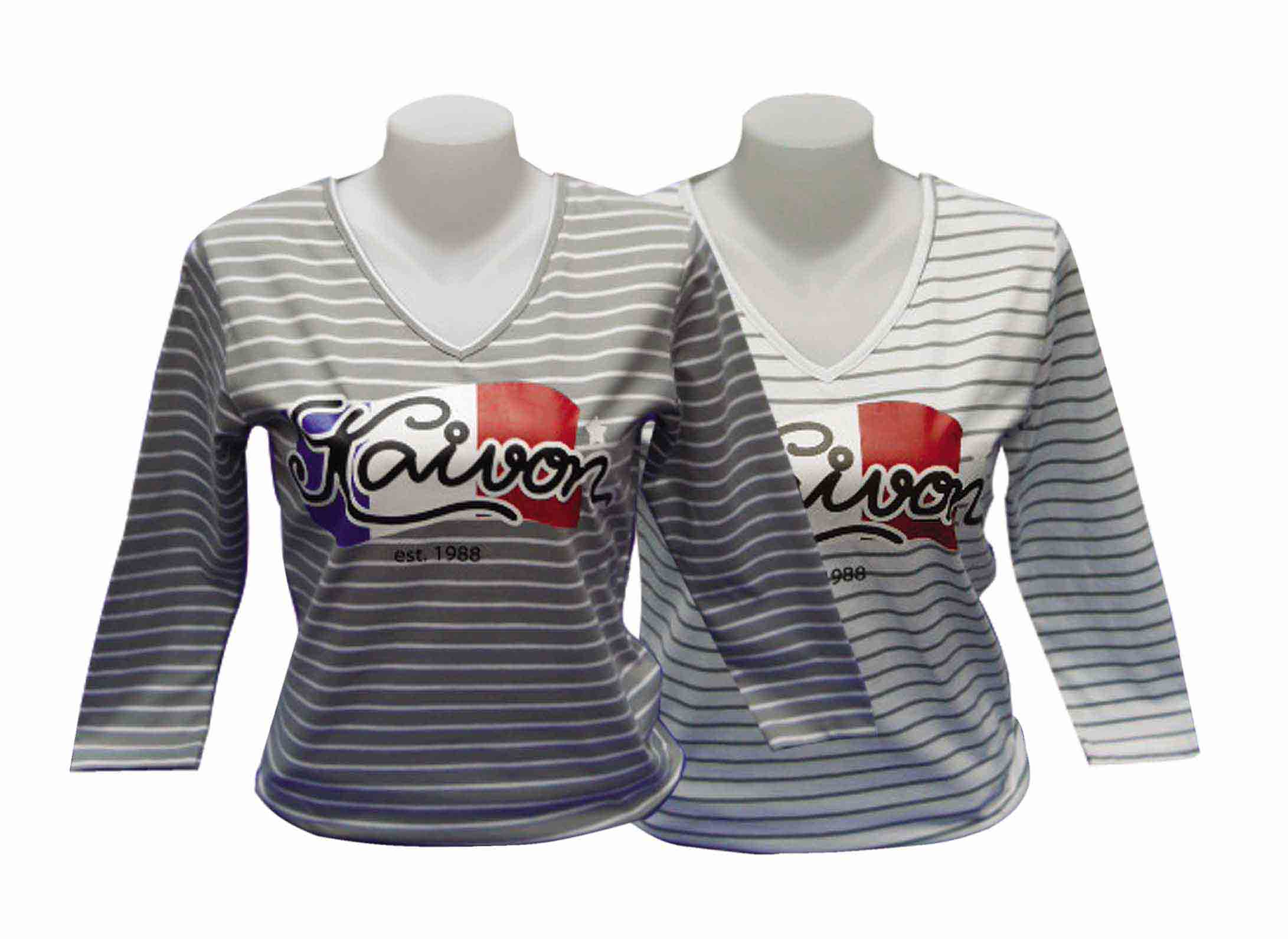 เสื้อคอวีแขนยาวผู้หญิงลายริ้ว ( มีพิมพ์ลายด้านหน้า ) ปกติราคา 750 บาท ( S,M,L,XL )