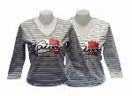 D027-เสื้อคอวีแขนยาวผู้หญิงลายริ้ว ( มีพิมพ์ลายด้านหน้า )