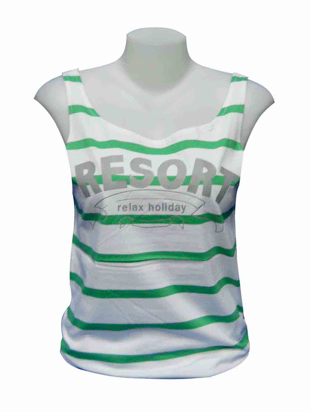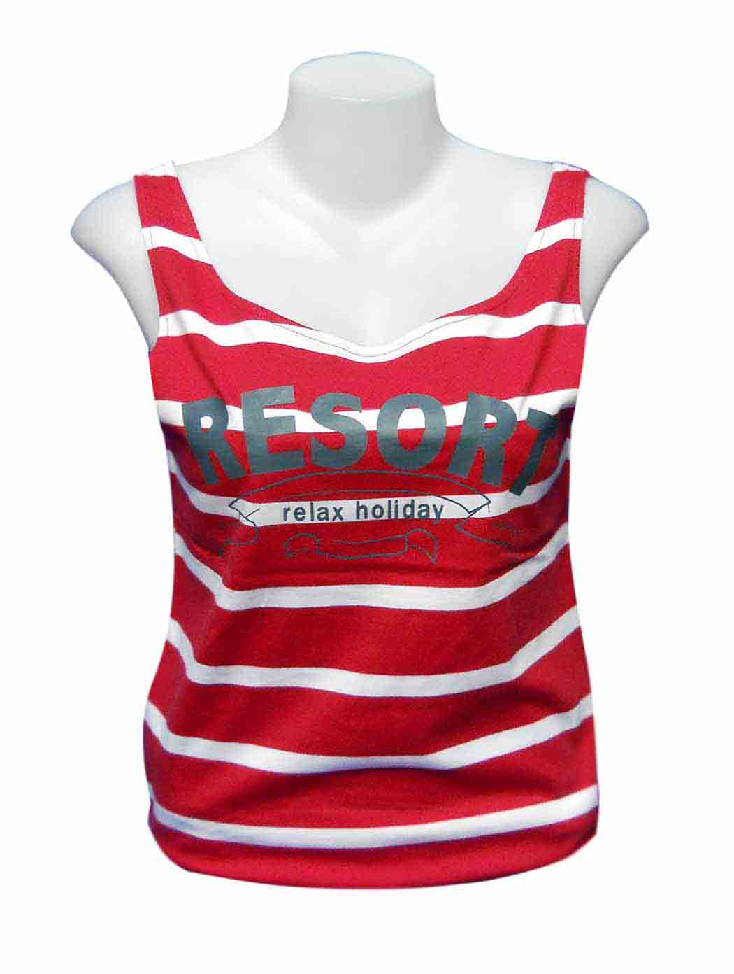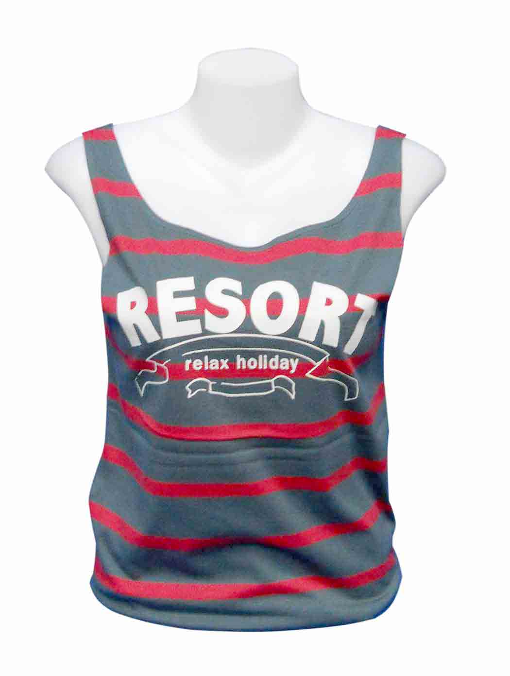 D033-เสื้อกล้ามผู้หญิงลายริ้ว ( มีพิมพ์ลายด้านหน้า )