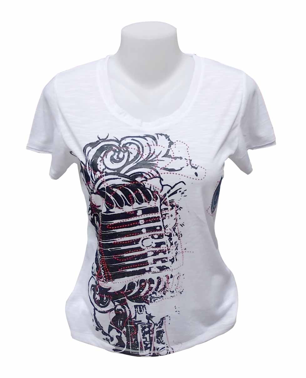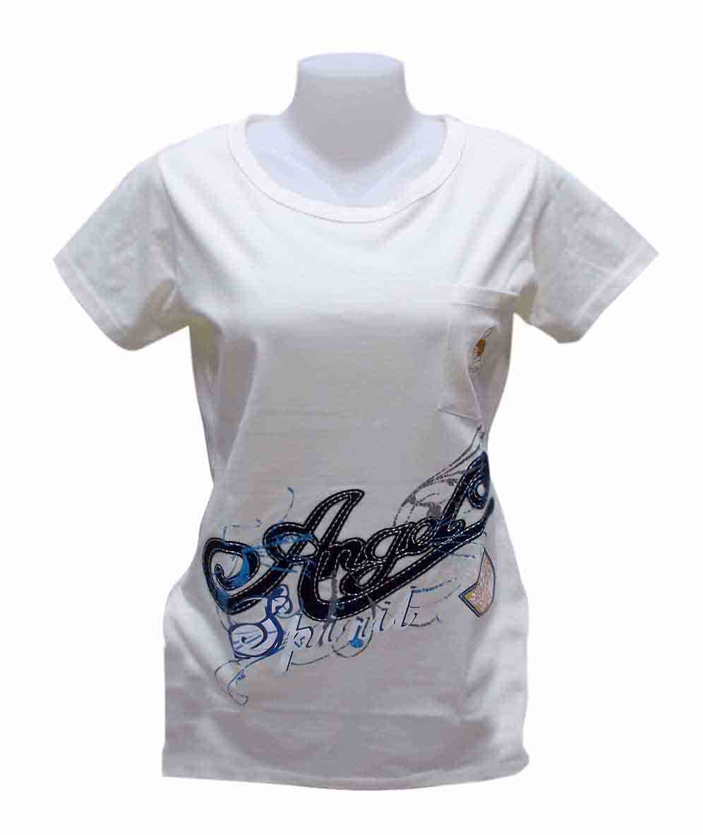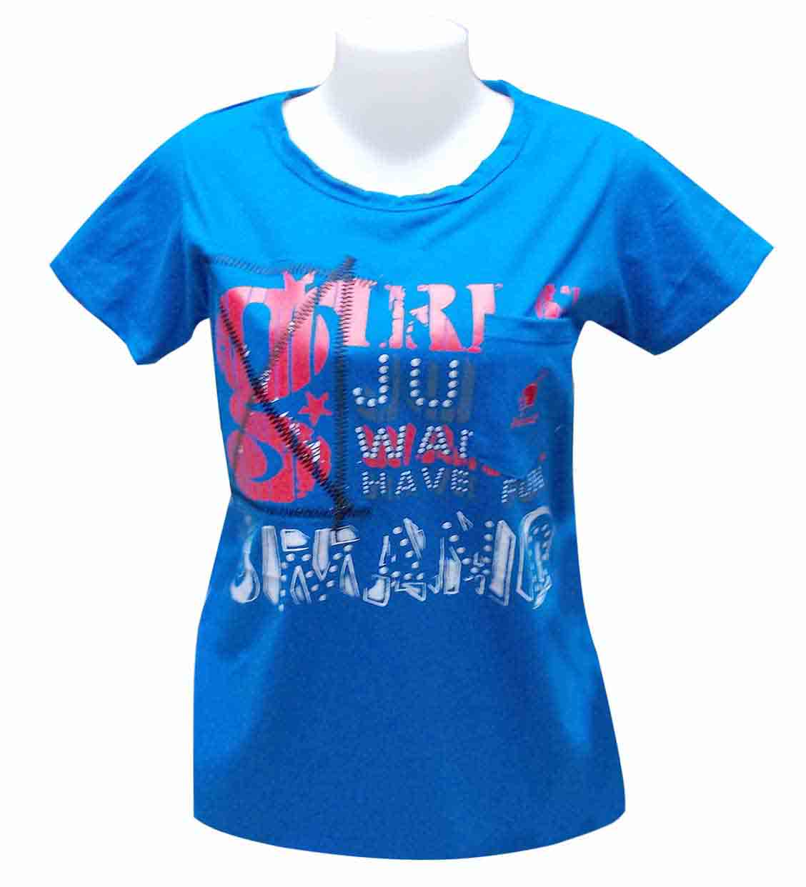F048-เสื้อยืดผู้หญิงคอกลมพิมพ์ลาย และ ปัก