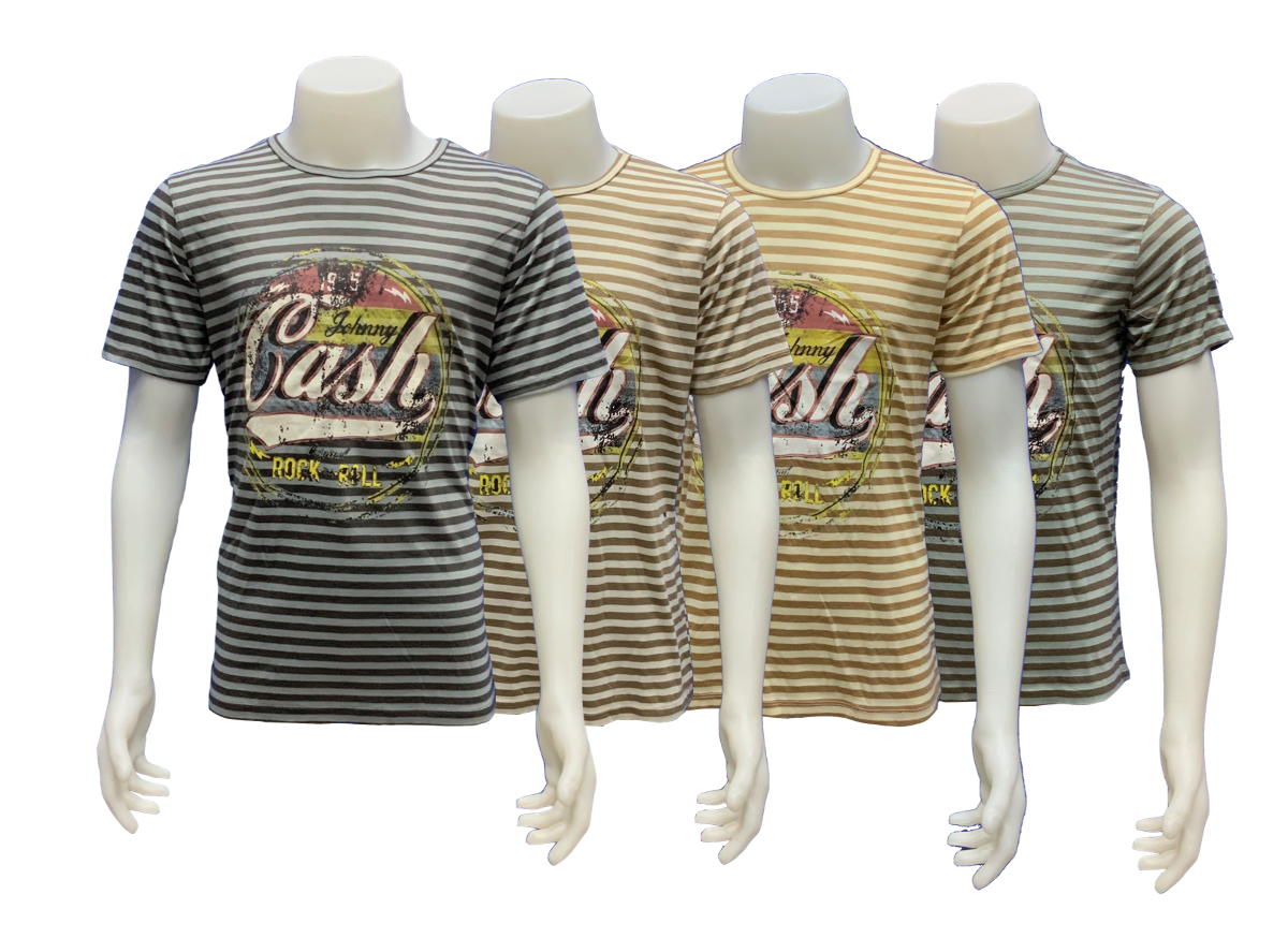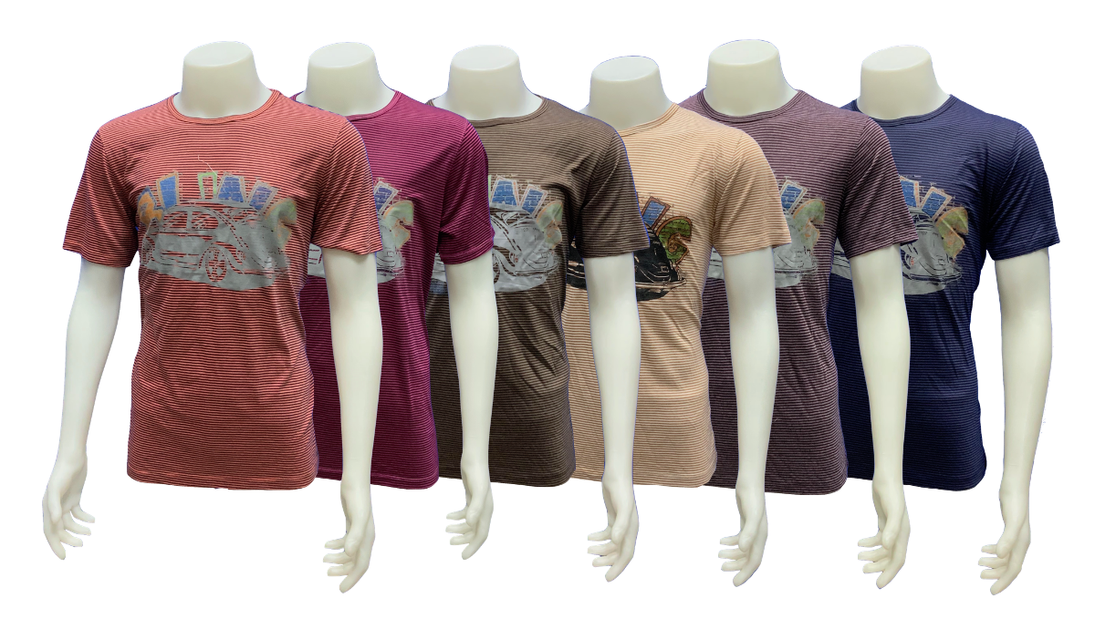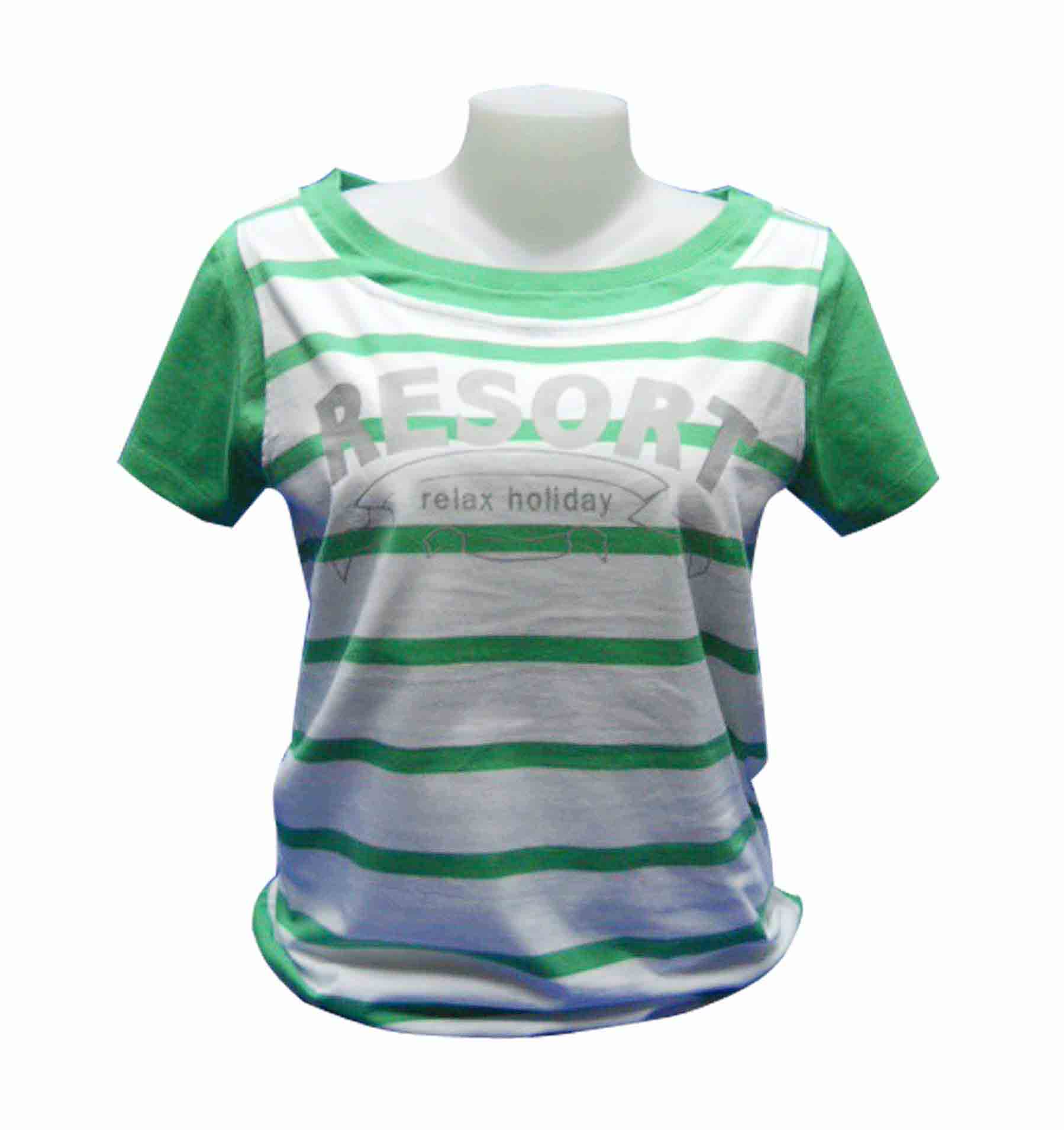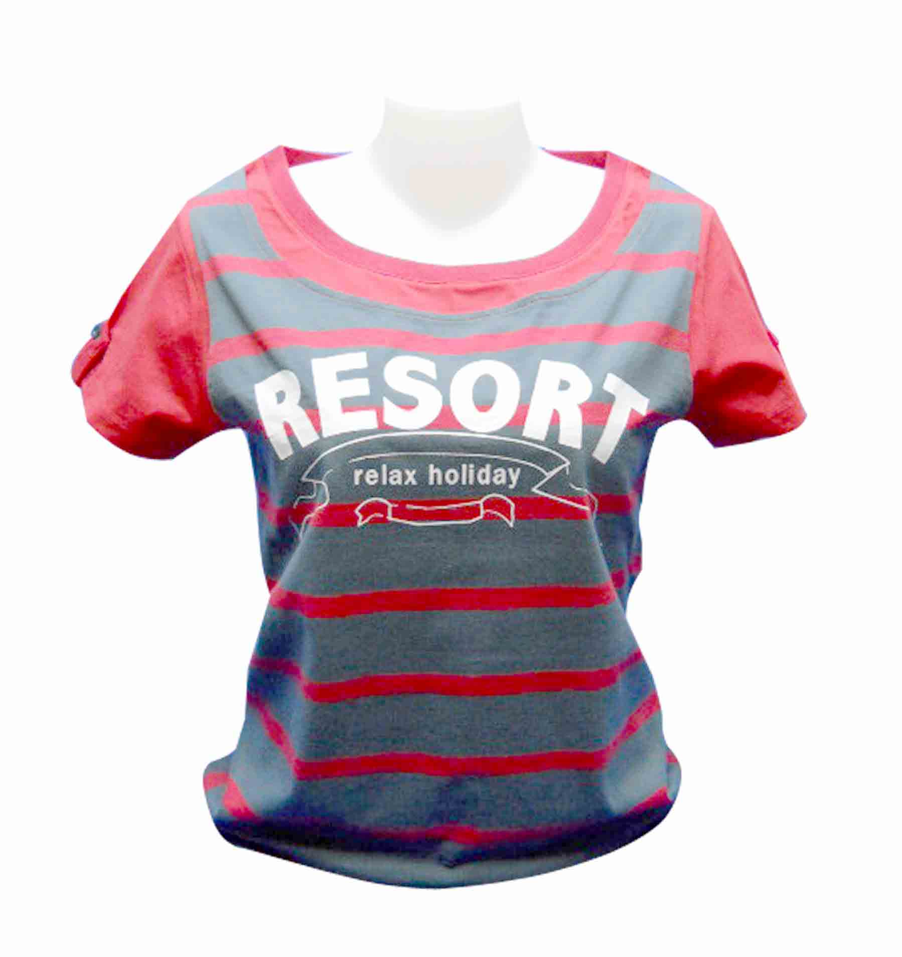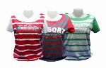 C022-เสื้อคอกลมแขนสั้นลายริ้ว ( มีพิมพ์ลายด้านหน้า )