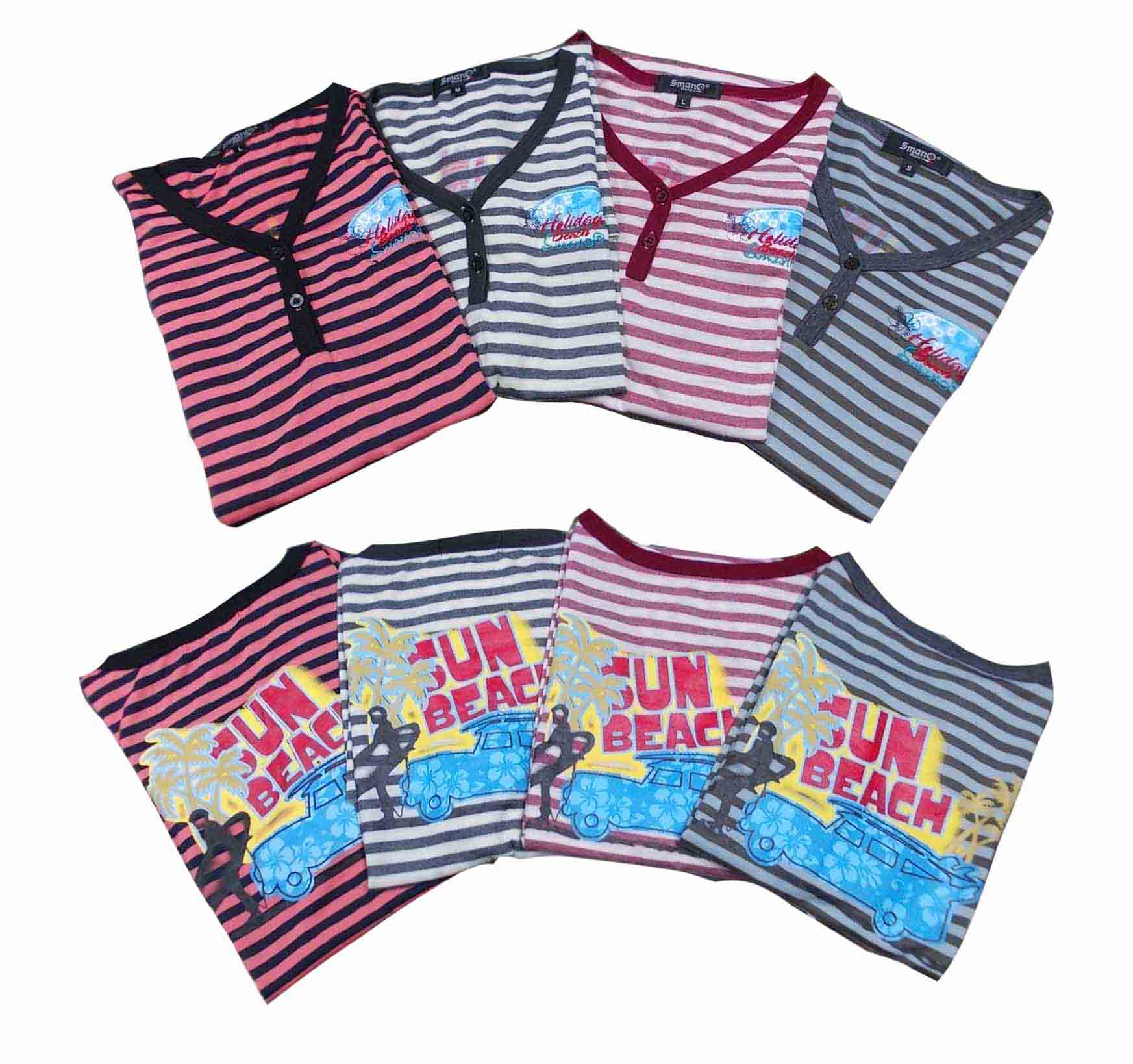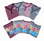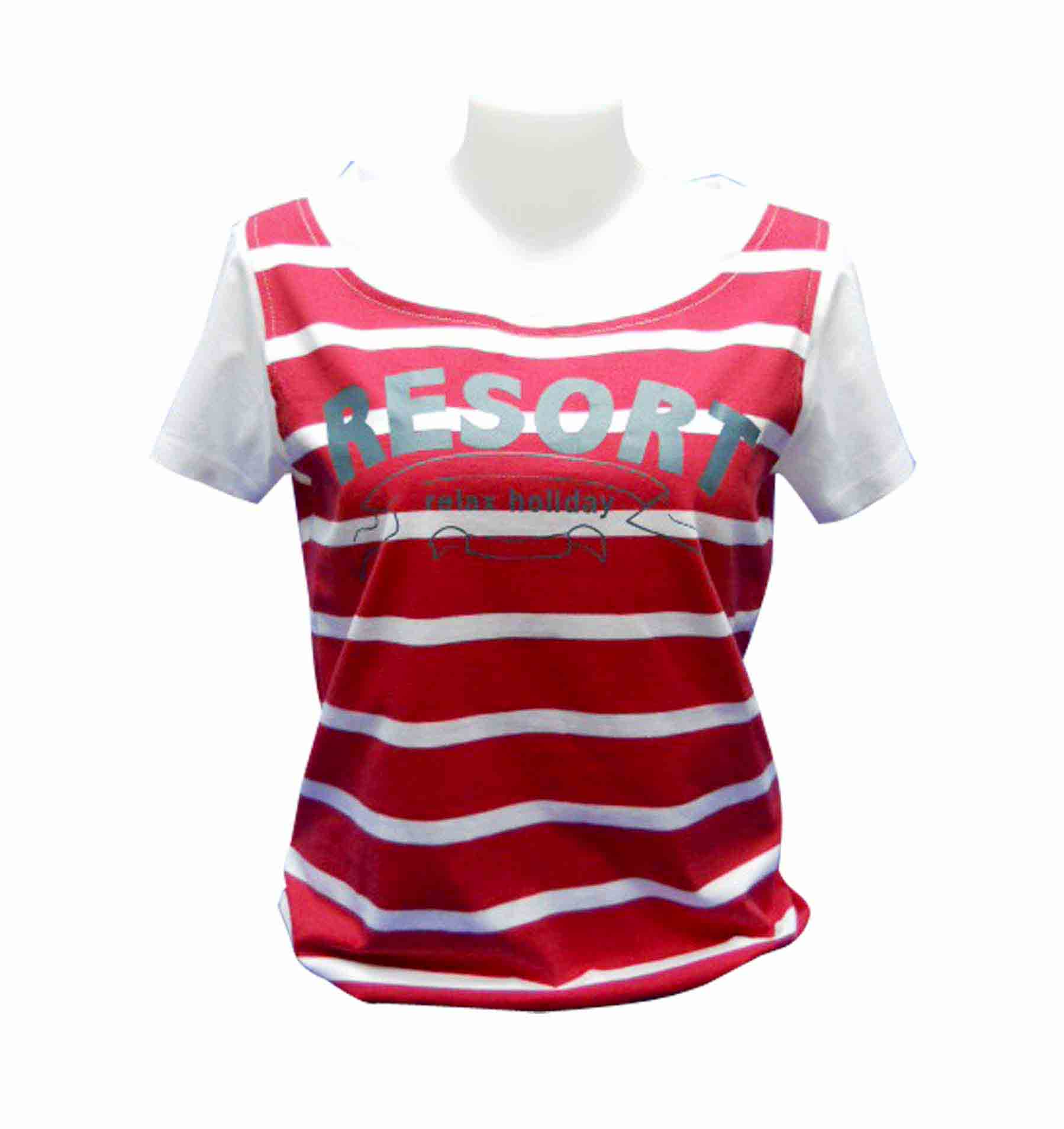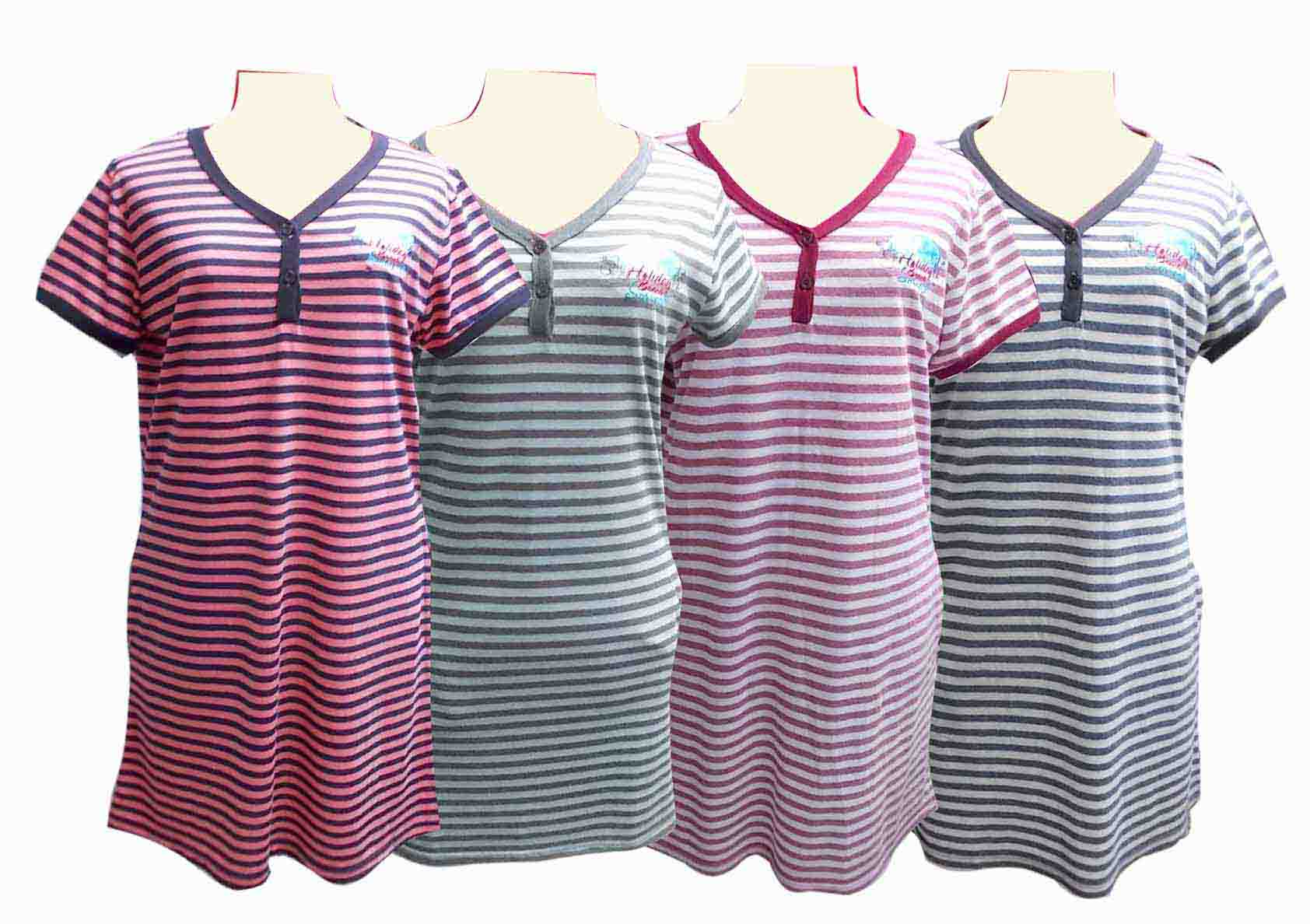C022-เสื้อคอกลมแขนสั้นลายริ้ว ( มีพิมพ์ลายด้านหน้า )