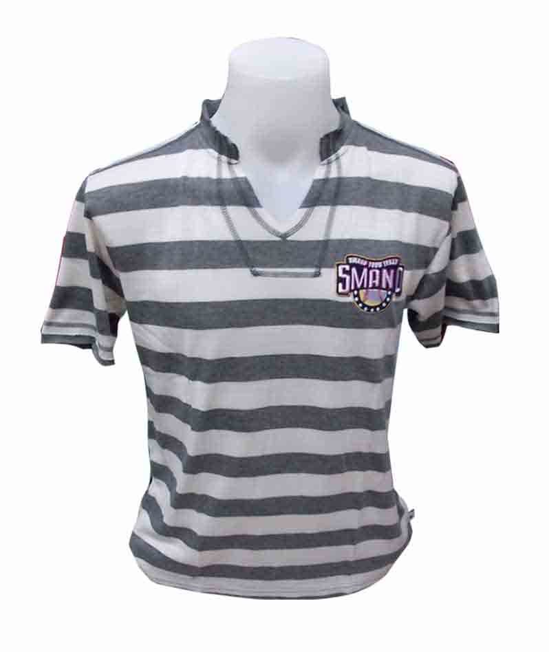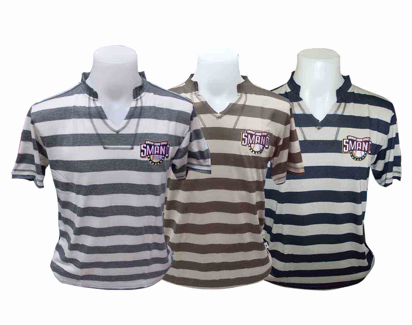 G009-เสื้อยืดแฟชั่นผู้ชายลายริ้ว ( มีปักอาร์มด้านหน้า )